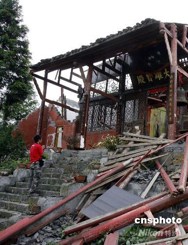 图:汶川地震使都江堰二王庙损毁严重