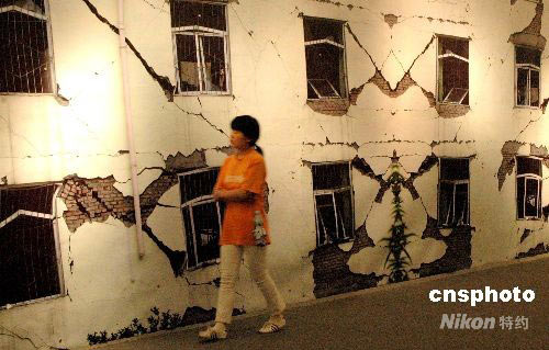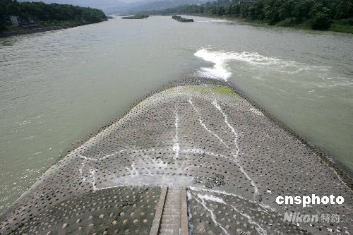 图:四川都江堰鱼嘴分水堤震后出现裂缝