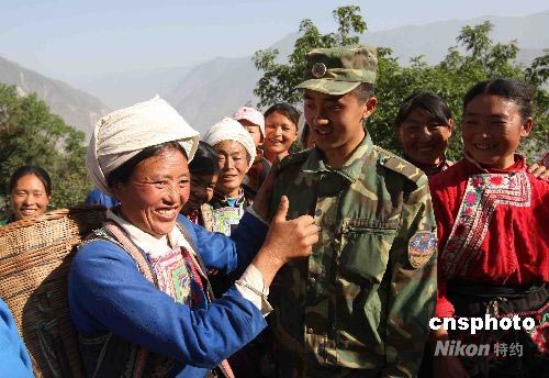 图:四川震区羌族民众夸赞解放军