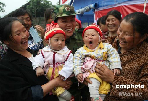 地震灾区双胞胎兄弟成救助站“小明星”