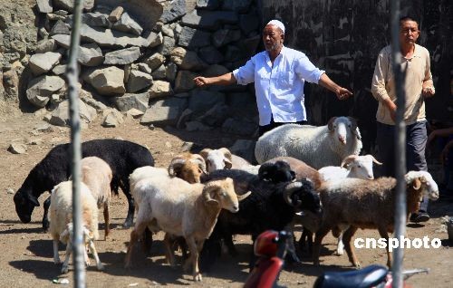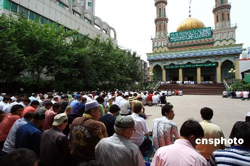 图:乌鲁木齐穆斯林主麻日清真寺内做礼拜