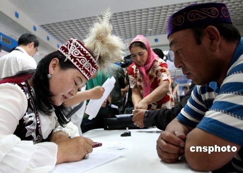 图:乌鲁木齐市民为“七·五”事件受害者捐款