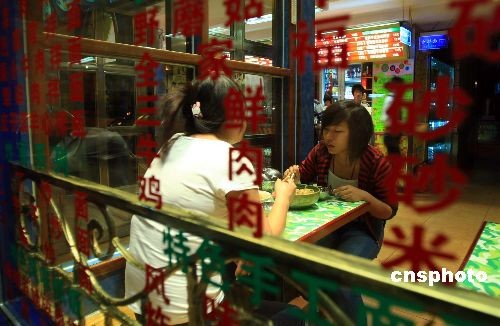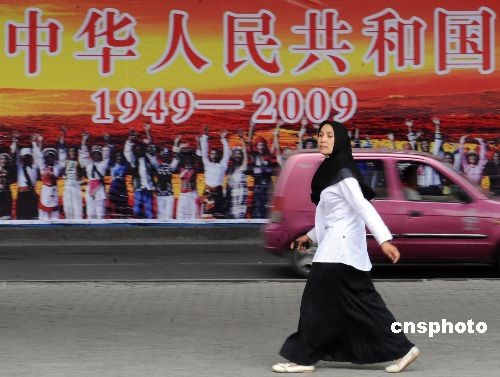 图:乌鲁木齐市一店主悬挂“民族团结”横幅