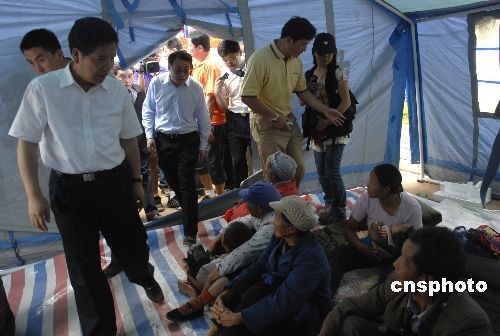 图:云南省长秦光荣看望姚安地震重灾区民众