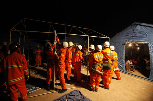 云南姚安地震 搭建救灾帐篷