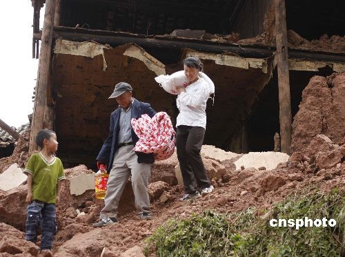 图:云南姚安地震灾区及时发放救灾物资