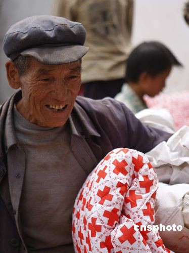 图:云南姚安地震灾区灾民领取救灾物资