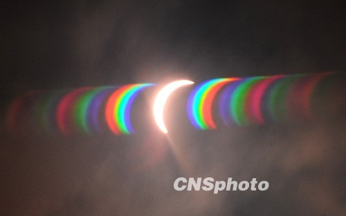 中国各地观测日食奇观:南宁出现日食奇特景观