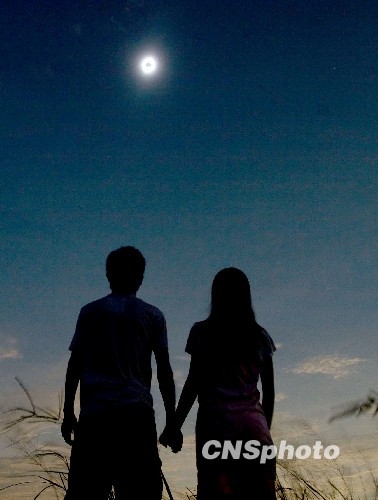 中国各地群众观看日食奇观:中外"追日族"拉萨捕"食"