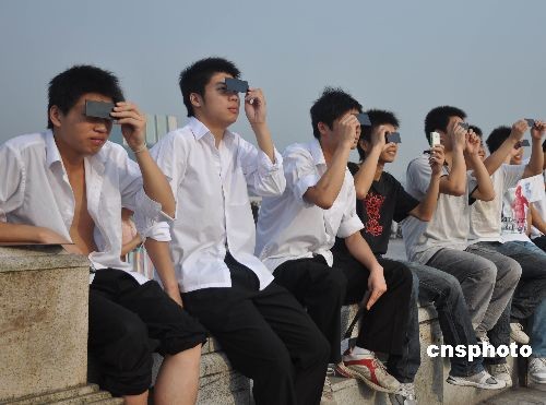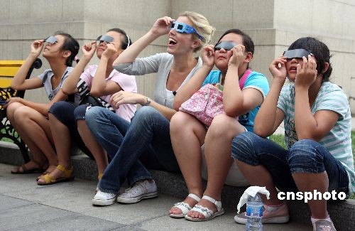 中国各地群众观看日食奇观:外国媒体关注中国民众观测日全食