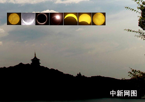 杭州西湖观日全食 忽隐忽现留下妙幻魅影