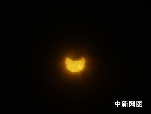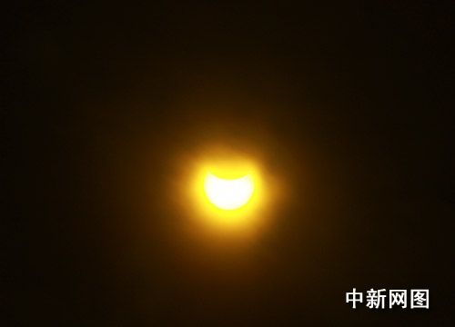 图:“大日食”如约光临重庆 当地市民翘首观看