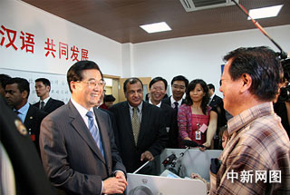 ·胡锦涛参观毛里求斯中国文化中心(图)(2月18日 13:27)