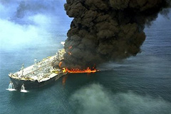 组图:迪拜港口油轮与集装箱货船相撞起火