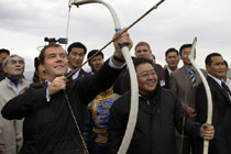 图:梅德韦杰夫蒙古草原弯弓射箭试身手