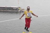 组图:韩国汉江上举行高空走钢丝竞速大赛