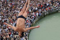图:法国"悬崖"跳水赛 选手比技巧拼勇气