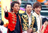 图为音乐组合Boy`Z为大会演唱流行歌曲