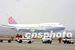载有春节返乡探亲台商及其眷属"华航"包机飞离浦东机场