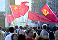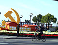 组图:天安门广场吊装巨型标语牌的新景观