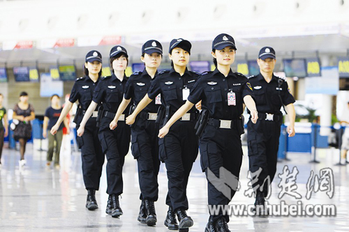 国内第一支空港女子特警队,昨日(28日)在武汉天河国际机场亮相。据悉,这支特警队是天河机场公安局专门从警校特招的,她们将担负机场候机楼等重要部位的日常巡逻执勤任务。女特警既可震慑犯罪,也能发挥其特有的亲和力,更好地为旅客服务。