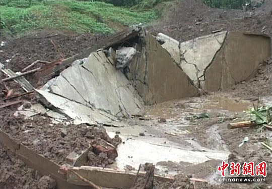 贵州省关岭县岗乌镇大寨组合永窝组结合部发生的山体滑坡现场。