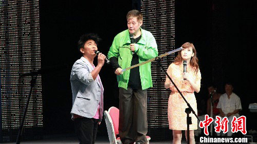 图为赵本山与台湾知名演员吴宗宪、侯佩岑合作小品《演员的烦恼》。中新社发 黄少华 摄