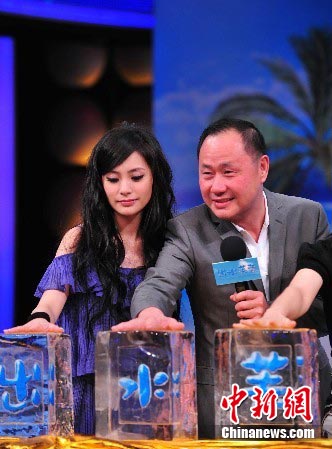 阿娇卷发惊艳亮相 与刘镇伟玩摸冰游戏(2)