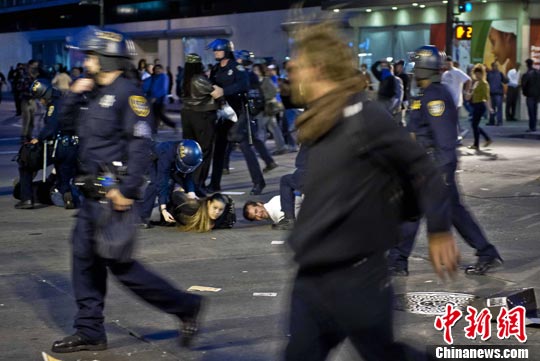 图为警方逮捕抗议者。中新社发 陈钢 摄