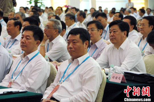 7月10日,以“加强新兴产业合作,提升两岸竞争力”为主题的第六届两岸经贸文化论坛在广州开幕。为响应论坛节能环保、新能源的绿色主题,本届大会代表不穿西装不系领带,便装参会。中新社发 柯小军 摄
