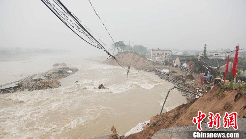 图为大沙河决堤后抢险现场。中新社发 张娅子 摄