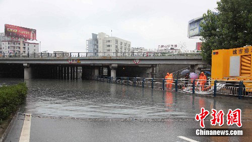 图为12日上午9时,安徽合肥强降雨后导致城市多处内涝。中新社发 张娅子 摄
