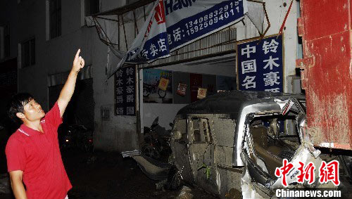 7月13日凌晨4时许,云南昭通巧家县小河镇发生山洪灾害,初步统计已造成12人死亡、32人失踪、43人受伤,并有50余户民房在灾害中倒塌、损毁。图为一间被洪水冲刷过的摩托车修理铺。中新社发 田洪 摄