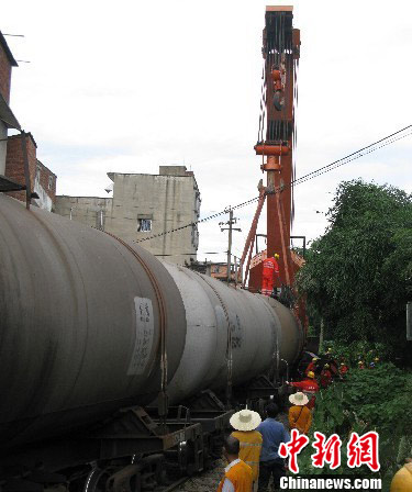 组图:广西柳州满载柴油火车发生脱轨(2)