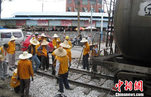 组图:广西柳州满载柴油火车发生脱轨(3)