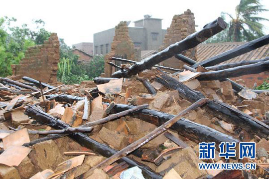 7月22日,台风“灿都”造成广东吴川市一批房屋倒塌。简陈明 摄