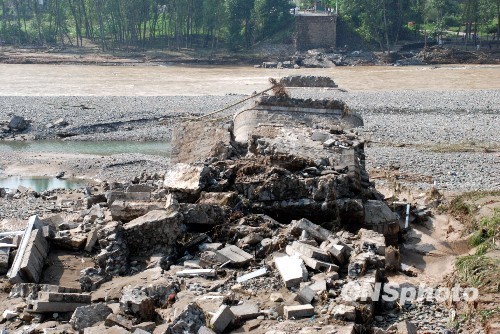 7月23日晚8时至24日21时,河南省洛阳市南部山区栾川县遭遇特大暴雨袭击,7月24日下午5时20分潭头镇汤营村伊河汤营大桥整体垮塌,桥上众多滞留人员不幸落入水中。事件发生后,栾川县、嵩县出动军民至少4000人昼夜“拉网”搜救。中新社发 巩卫东 摄