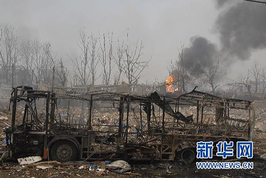 7月28日,消防官兵在火灾现场救援。当日上午10时10分左右,南京市迈皋桥附近一工厂发生爆炸,死伤人数不明。