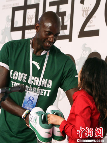 NBA球星加内特现身世博园 捐赠环保运动装备