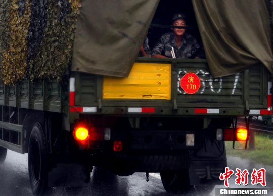 8月5日上午,济南战区“前卫--2010”防空部队单元合成演练正在进行中,一支防空高炮部队冒雨实施阵地转移。在演练前三天的检验性阶段,重点实施了紧急疏散、作战筹划、侦察预警、信息对抗、对空抗击、指挥所、阵地转移等作战演练。中新社记者 宋吉河 摄