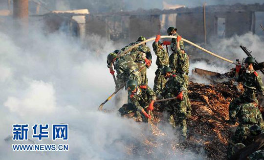 8月16日,消防人员在现场灭火。王建威 摄