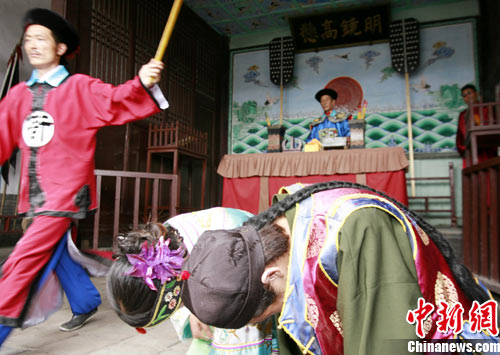 9月4日,河南南阳,内乡古县衙升堂审理一桩杀人凶案,使人们了解古代审案之法,令人叹为观止。中新社记者 王中举 摄