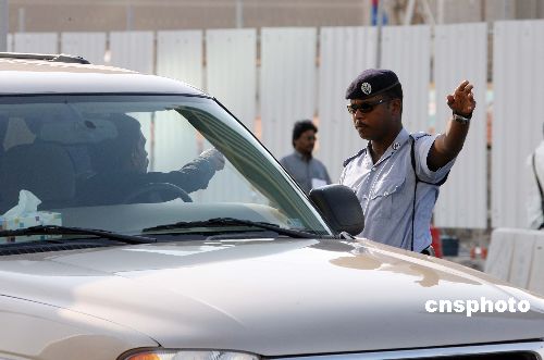 多哈当地时间十一月二十九日,卡塔尔警察在部分道路上实施管制,以确保亚运会顺利举行。中新社发 毛建军 摄