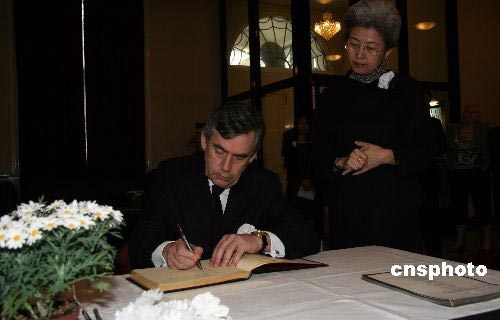 图:英国首相布朗吊唁四川地震遇难者