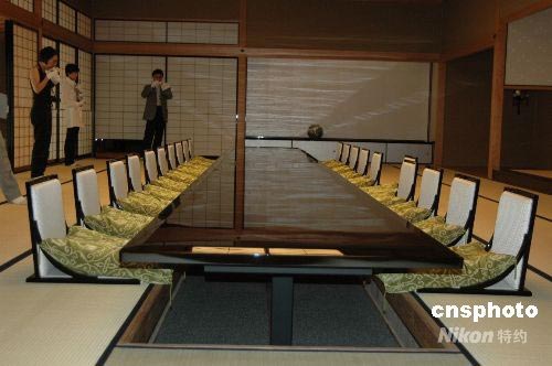 6月26日至27日将在京都迎宾馆举行“G8京都外长会议”,位于京都市中心上京区京都御所旁的京都迎宾馆内部已装饰一新。这次会议与5月底和6月中旬召开的“G8神户环境部长会议”、“G8大阪财长会议”一起,属于北海道洞爷湖G8峰会的准备会议。该宾馆占地约两万平方米,是京都御苑的一部分。御苑曾经是皇宫的所在地。中新社发 关妍 摄