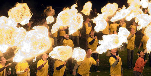 10月15日,在荷兰艾恩德霍芬,理工大学的267名学生参加集体喷火活动。这些学生打破原先为115人共同创造的集体喷火吉尼斯世界纪录。