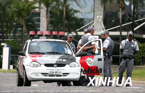 11月7日,在巴西圣保罗,几名警察在20国集团财政部长和中央银行行长会议举办地点戒备。20国集团财长和央行行长会议于7日至9日在圣保罗举行。新华社记者张传奇摄