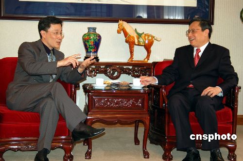 中国驻美大使周文重最近接受美西《侨报》总裁谢一宁专访,指出中美关系30年取得的进步超过了任何人的想象。中新社发 李珍玉 摄