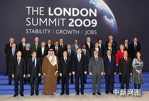 当地时间4月2日上午,二十国集团伦敦峰会正式举行。图为参会领导人在会前照全家福。前排中间为峰会东道主英国首相布朗,左四为中国国家主席胡锦涛。作者:理查德
