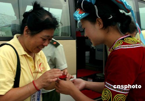 8月12日,开国元勋子女重走长征路抵达红军长征途中彝海结盟之地凉山冕宁县,受到当地彝族同胞敬酒传统礼仪欢迎。1935年5月20日至27日,红军长征经过冕宁,建立第一个红色政权、第一支少数民族武装,红军先遣队司令员刘伯承与彝族果基家支首领果基约达(小叶丹)在彝海之滨歃血结盟,红军顺利通过百里彝区。从此“彝海结盟”成为民族团结的历史佳话。中新社发 田地 摄